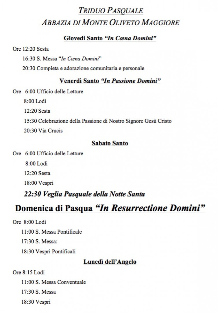 ore 20.45 Compieta (canto gregoriano; in estate: 21.00)